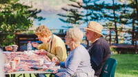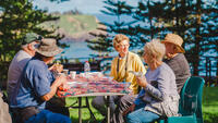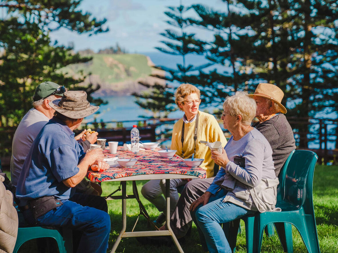 Take your choice of a leisurely stroll through the lush Palm Glen Reserve. Or for the more energetic enjoy a leisurely 3.5km walk through scenic Mt. Bates to Captain Cook Monument. At the end of the walks meet on the clifftop for a delicious breakfast barbecue.