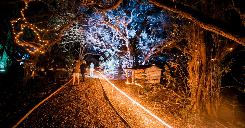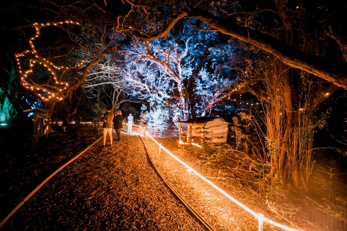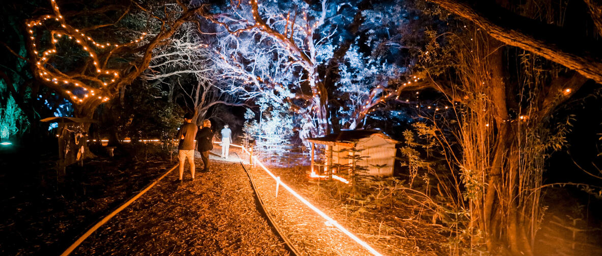 The setting is 10 acres of magical Norfolk pines and bushland lit up like an enchanted forest. Meander along (or ride in the ‘moon buggy’) a gentle winding path with a descendant of the Bounty mutineers, as he recites his poems and lights up the dioramas.