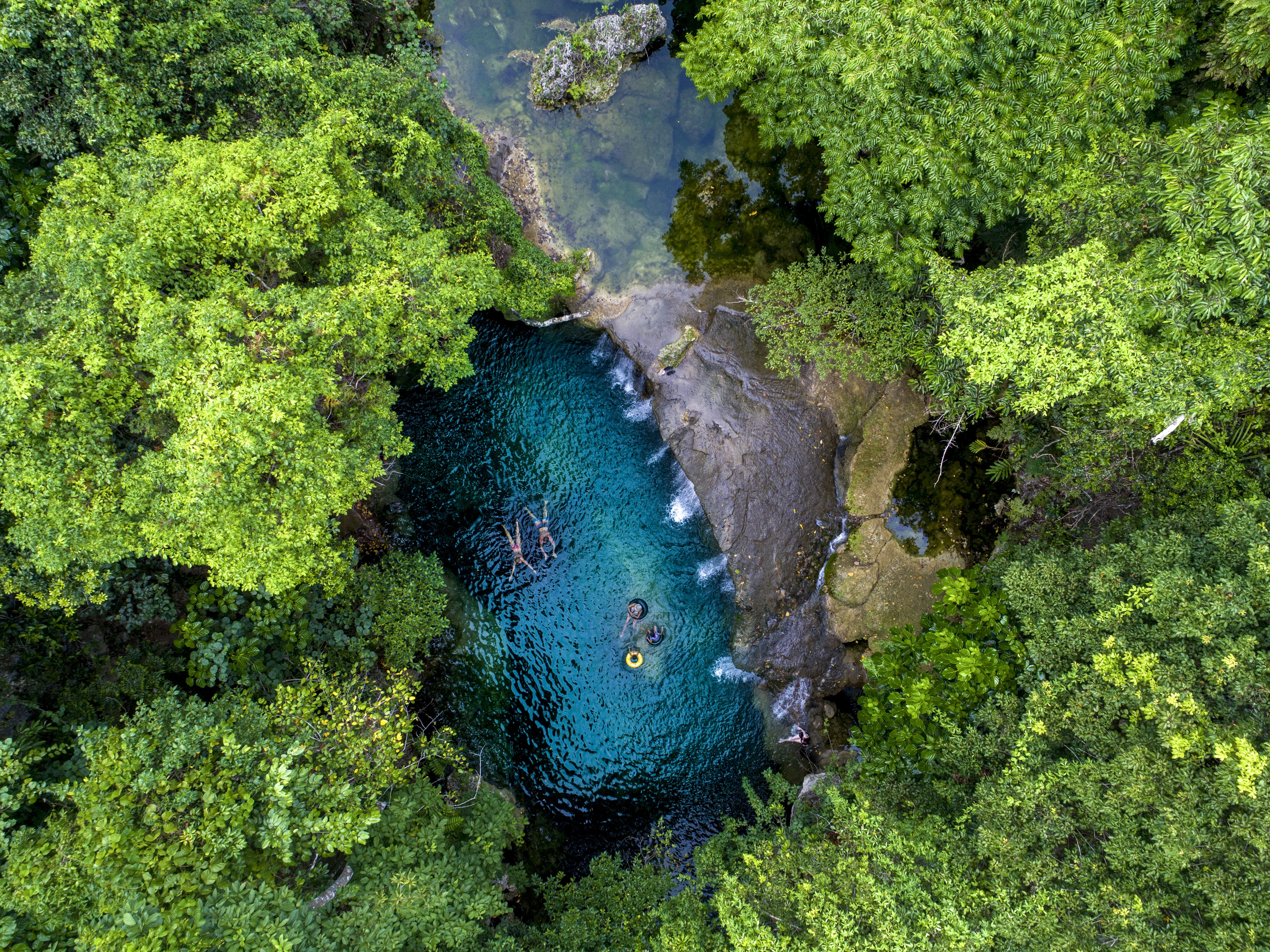 Diving into the intensely clear waters of the Blue Holes, Espiritu Santo