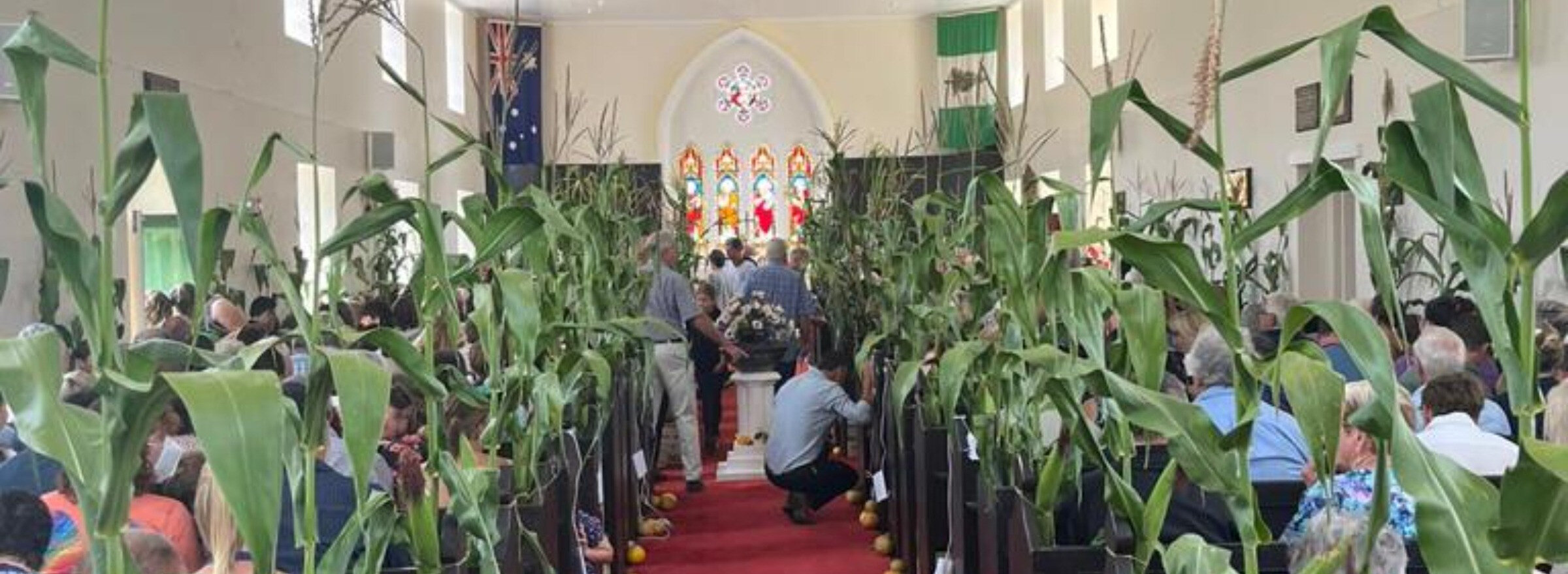 The tradition is a legacy from the American whalers who would make frequent stops to the island during the late 1800s. The story goes that Norfolk Island resident Isaac Robinson, and American consul, started the tradition by decorating the pews of All Saints Church with palm leaves and lemons. Today the Thanksgiving tradition continues; the churches are decorated with generous displays of fruit and vegetables, which are then auctioned off afterwards with the proceeds going to charity.