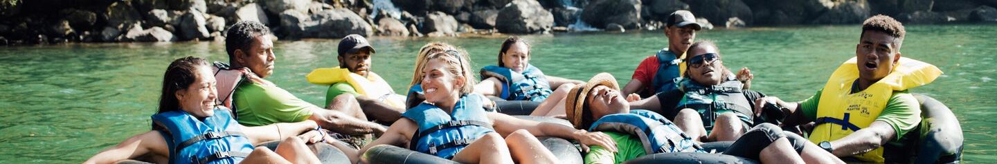 Tubing offers the best seats in the house for experiencing Fiji’s beautiful shores. Typically, you gaze out toward the spectacular ocean, but this unique vantage point from the water helps travellers appreciate the view of the sprawling coastline and the vibrant island foliage on this thrilling ride.