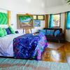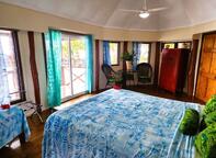 Open plan, private lagoon & oceanfront bungalow equipped with ensuite tile bathroom, wood floors, King or Queen bed + bunk bed or trundle bed, ceiling fans, separate mini-kitchenette, no-cooking facilities mini-bar on request, bar fridge, electric Jug, water filter and a private over the water balcony.