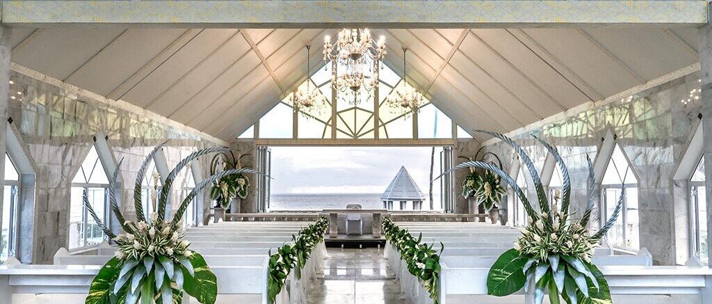 - Choose from groomed beach with decorated floral arch or flower heart and tailored wedding aisle OR the resort’s beachfront Chapel by the Sea