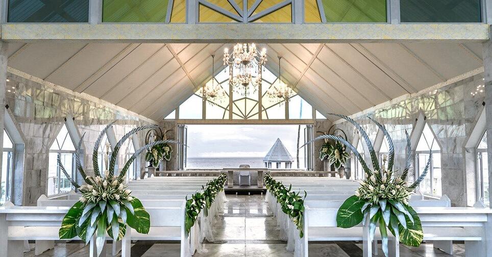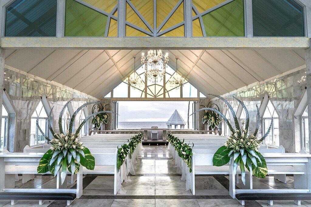 Choose from groomed beach with decorated floral arch or flower heart and tailored wedding aisle OR the resort’s beachfront Chapel by the Sea
