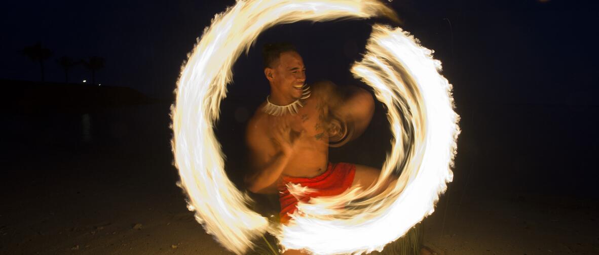 with the resort's own National Chamption Fire-knife dancers.