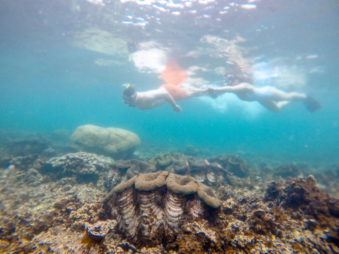 Kayak or snorkel in our village giant clam reserve –swim amongst or paddle over 100 giant clams, some as big as a coffee table. The clams are protected by the village. Our guides are also able to locate our local turtles so guests can see them in their natural habitat. Times vary according to tides.