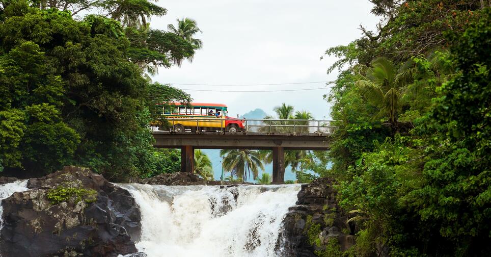 This drive is through the scenic north east coast of Upolu Island. Stops can be made to photograph villages as we head to Falefa Falls, which is about 30 ft high and drops directly into the ocean. A refreshing swim on the way back is made at the Piula Fresh Water Cave Pool where the warm sea is located next to it and is ideal for alternative dips between fresh and salt water. The Cave Pool runs underneath the oldest Methodist church in Samoa.