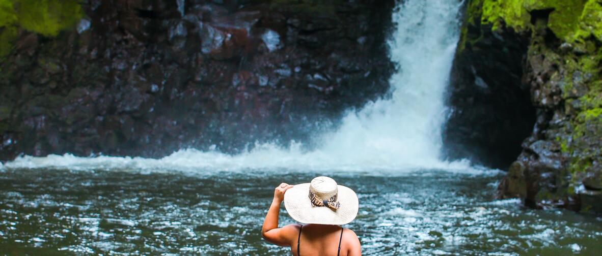landscapes and pretty village gardens. A grassy path leads to a beautiful freshwater swimming hole and waterfall in a beautiful