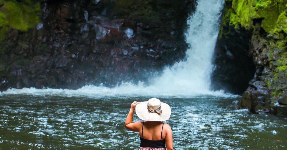 The village of Sauniatu is tucked in the cracker of an extinct volcano 20 miles east of Apia. Sauniatu waterfall and scenic drive is