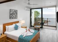 Comfortable and spacious, the Luxury Waterfont Villas are the perfect choice for those wanting a little more luxury during their stay. Each Villa is decorated in a tasteful contemporary style with high quality furnishings. Inside there is a living area with kitchenette and a good sized bathroom complete with a rainfall showerhead. The interior leads out to a private balcony with Jacuzzi and views of the resort's garden and ocean.