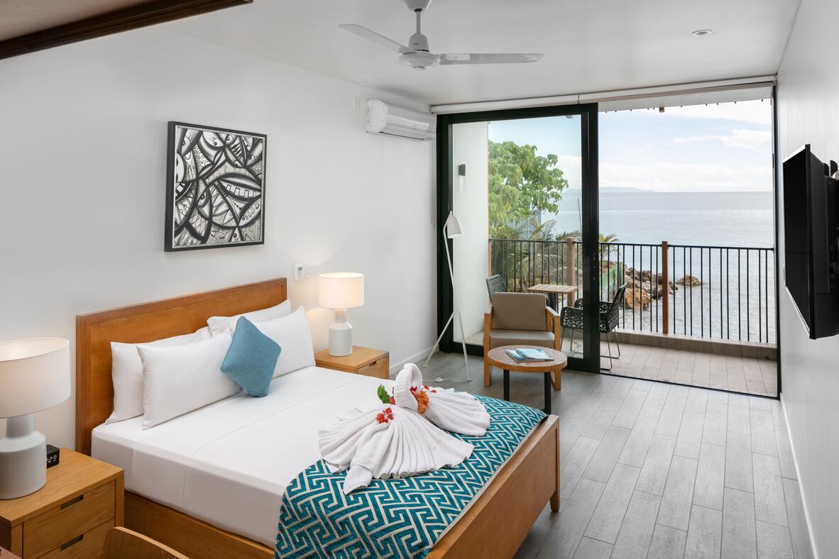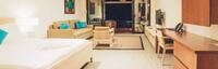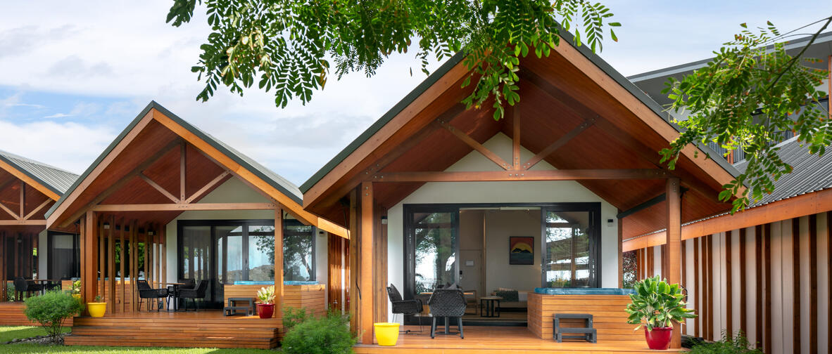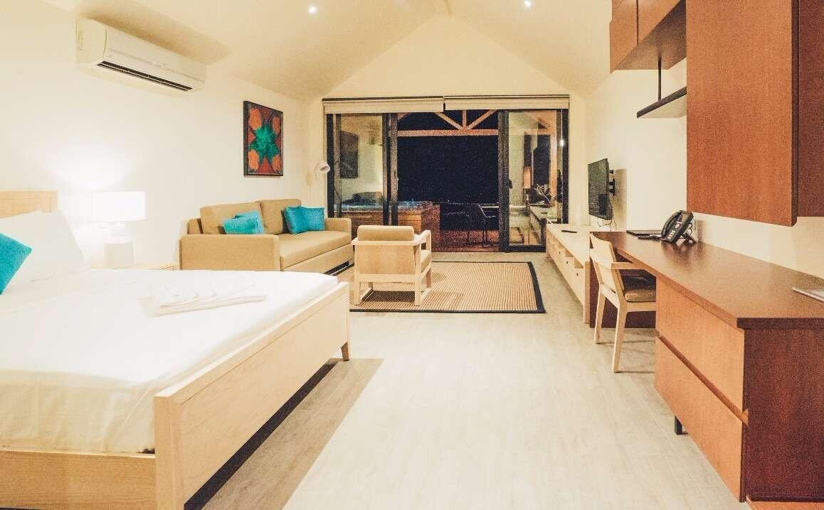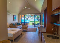 Comfortable and spacious, the Luxury Waterfont Villas are the perfect choice for those wanting a little more luxury during their stay. Each Villa is decorated in a tasteful contemporary style with high quality furnishings. Inside there is a living area with kitchenette and a good sized bathroom complete with a rainfall showerhead. The interior leads out to a private balcony with Jacuzzi and views of the resort's garden and ocean.