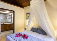 The Garden View Bungalows are very private and free standing, situated in the adults only area of the resort. The rooms are located 10 metres from the water's edge of Erakor lagoon and are fully self-contained with a private balcony, and a romantic canopy over the bed. Amenities include gas cook top, microwave, toaster, kettle, fridge, cooking facilities, ceiling fans over bed and living area, air-conditioning.