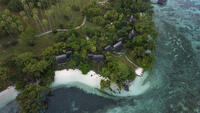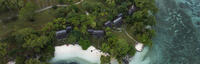The Courtyard Rooms are part of the Fish Village, featuring two charming 2-bedroom villas crafted from 200-year-old teak wood. Each villa opens onto a lush central courtyard, creating a serene, family-friendly atmosphere. All guests of Fish Village enjoy a partially over-water lounge with stunning views of Ratua Bay, where sea turtles and dugongs are often spotted.