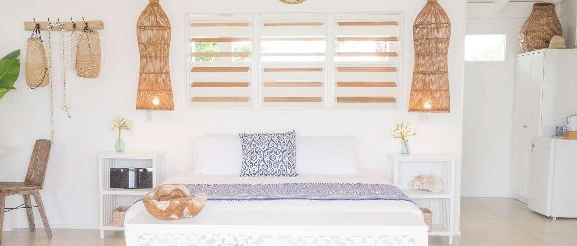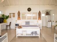 The resort has two coral beachfront villas. The original iconic gorgeous coral villa with a separate private open air bathroom, is located just metres from the water's edge. The Villas are finished with coral taken right from the beach in front of you. Exceptionally large at over 100m2 these Villas have plenty of space to just sit back and relax with their own lounge and an additional 2 single beds and the master enjoys a king bed (which can be split). Watch the sunset over the water from your private deck or hammock and then fall asleep to the sound of the waves.