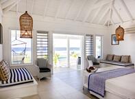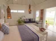 The resort has three beachfront villas. Showcasing a French Caribbean flair style throughout, the Beachfront Villa has high ceilings, subtle lighting and a modern bathroom including a raised couple's bath with a vista of the beach and ocean. Set on the pristine beachfront facing the sunsets. Villas are spacious and well-appointed and nothing has been spared in attention to detail with Wi-Fi, flat screen TVs and in-house movies.