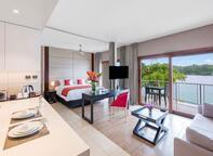 Spacious apartments with spectacular views of the Erakor lagoon with fully equipped kitchen, a separate bathroom, bedroom & lounge area separated by drapes & a large balcony. This room type has lift access. Interconnecting rooms are available. 3 accessible rooms are available.