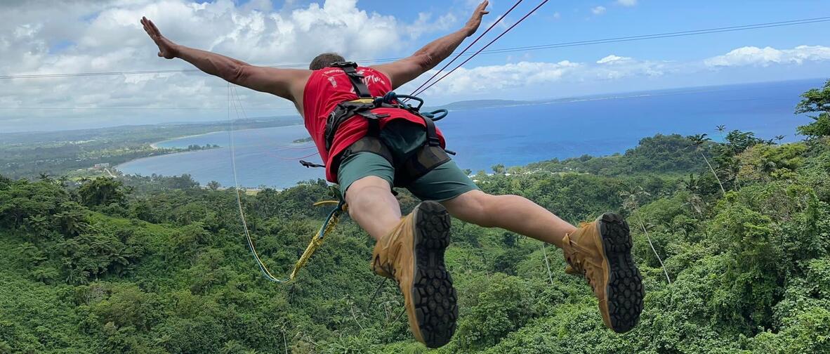 Step into a world of exhilarating adventure with the Vanuatu Jungle Canyon Swing. Hovering at a spine-tingling height of 70 metres, this is not just any swing. It's a hair raising voyage that sends you slicing through the air at blistering speeds of up to 120km per hour, with the pristine Mele Bay stretching out beneath your feet like a gleaming jewel. Whether you choose to swing solo or opt for a tandem the memories you create will be as endless as the horizons you'll witness.
