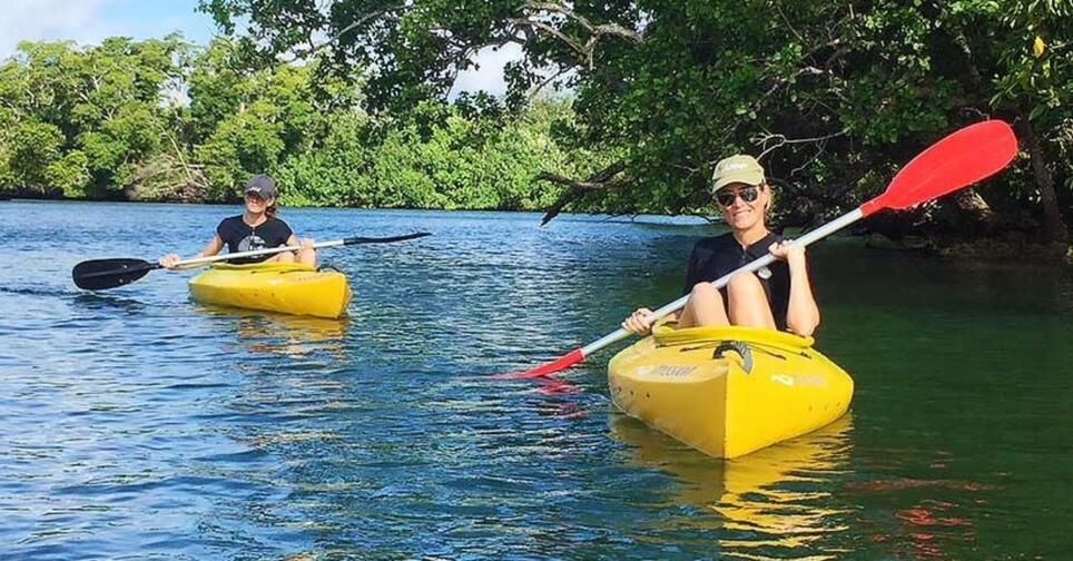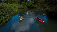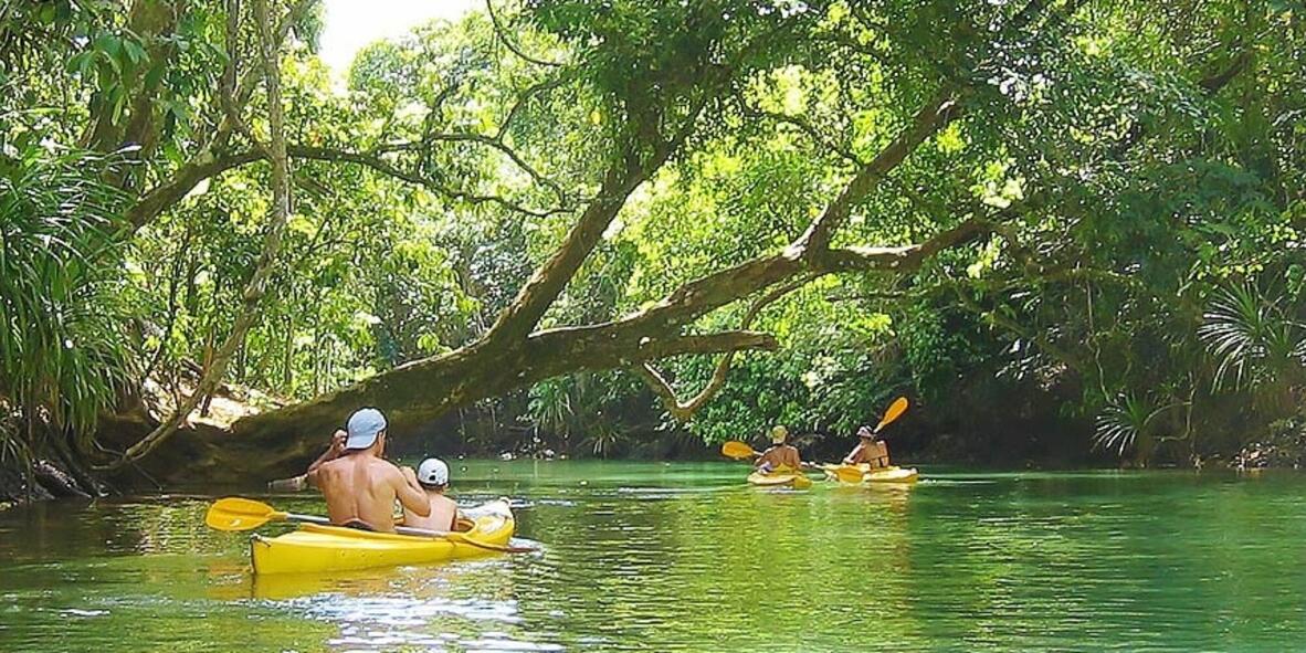 Experience the serenity of kayaking down a gently flowing freshwater river, surrounded by lush tropical forest. Enjoy a cool swim and have fun swinging on the tarzan rope. A perfect day out for everyone including families.