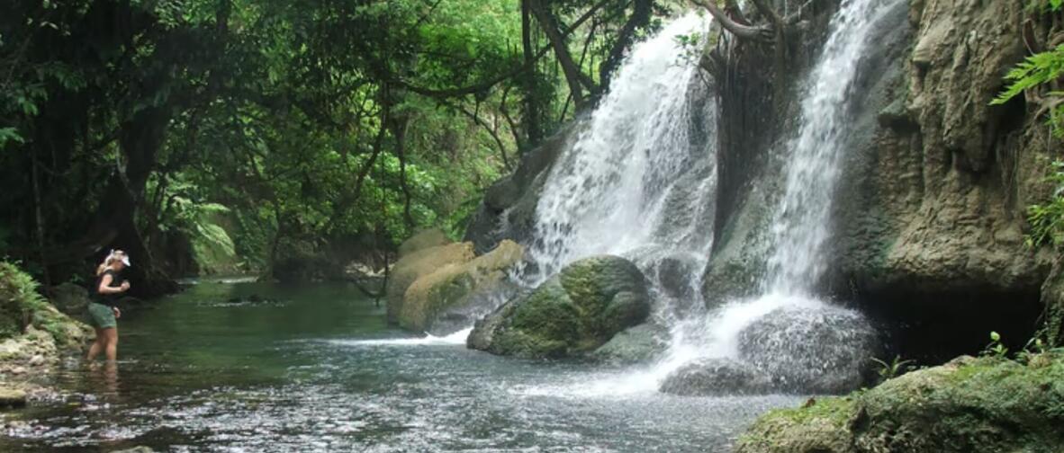 This half day tour gives you a glimpse of the rarely visited south Santo coastline. After driving through cattle ranches, coconut plantations and rickety bridges spanning wild rivers (approx 45 mins), you arrive at the beautiful Tuffintari Waterfalls. Fed by two rivers (one warm, one cold) the waterfalls and swimming hole are the perfect place to swim and chill out. Choose to do a one way walk/swim down the river to the ocean (approx 35 mins) or take the bus to the nearby black sand volcanic beach opposite Tongoa Island and go for a short walk around the local village. Walking shoes a must, along with mosquito repellant and a change of clothes. Return to Luganville in time for lunch at your favourite restaurant/cafe.