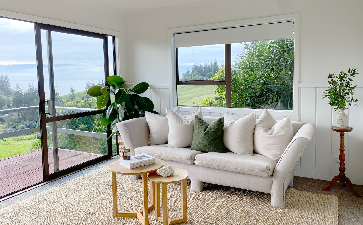 Two bedroom Ocean View Cottage: Our Two-Bedroom Ocean View Cottage is light-filled, open-plan and hosts beautiful raked ceilings. Both bedrooms comprise of a private ensuite and king-size bed that can be spilt into x2 single beds. Perfect for travelling couples, a handful of friends or small family to enjoy. The lounge, dining, kitchen and euro laundry lead out onto a private veranda to showcase uninterrupted views across Cascade and Mount Pitt.